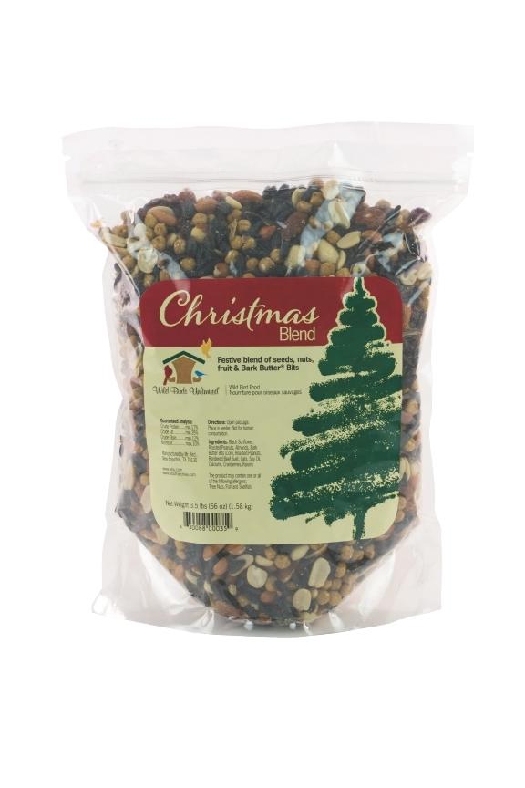 'Tis the season! This attractive blend is available for a limited time. It contains black oil sunflower, roasted peanuts, almonds, Bark Butter Bits®, cranberries, and raisins. A special treat for your birds during a special time of year